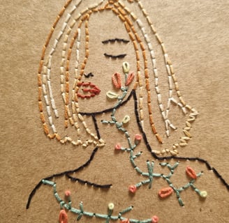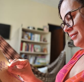 Eu desenvolvi uma filosofia que vai possibilitar que você aprenda a produzir esses bordados no papel sem se sentir pressionada , de um jeito leve, sensível, atento e acolhedor.