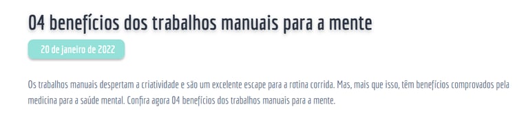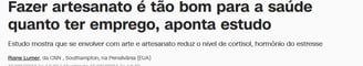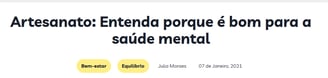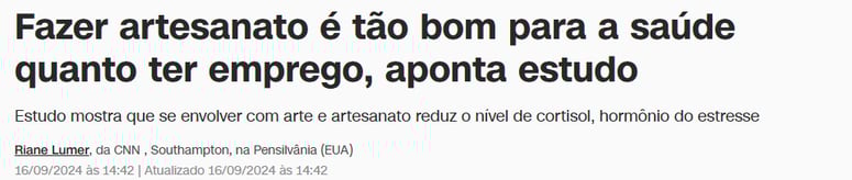 O CONTATO COM A ARTE MANUAL TRAZ INÚMEROS BENEFÍCIOS PARA A SAÚDE MAIS QUE COMPROVADOS :