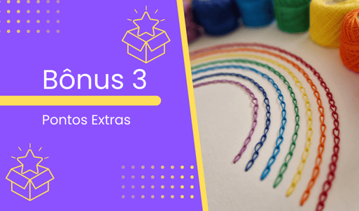 Ao longo dos módulos você vai aprender alguns pontos essenciais, como o ponto atrás, o ponto haste, o ponto cruz, o nó francês e o ponto cicatriz. Aqui nesse bônus você vai ganhar mais 3 pontos incríveis: o margarida, o pirulito e o corrente.